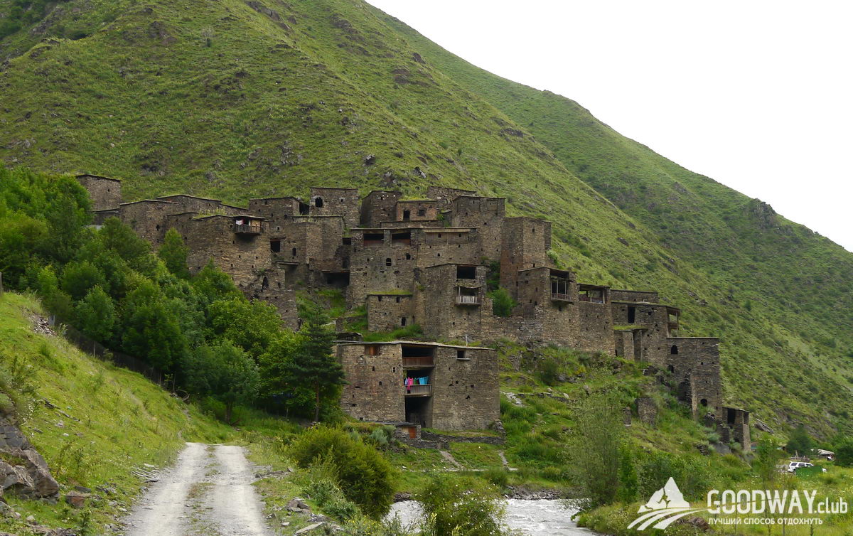 Поход из Тушети в Хевсурети считается лучшим треккинговым маршрутом в Грузии. Но мало кто бывал здесь. Причина в том, что обе области со всех сторон и друг от друга ограждены высокими горами и имеют автомобильное сообщение с миром только 3 месяца в году – с июля по сентябрь. Дорога грунтовая и доступна только полноприводным авто. Остальную часть года через перевал Абано высотой 2850м проехать невозможно из-за снега. Тропу в Тушетию заменили грунтовой дорогой только в 1975 году, а до этого здесь было вертолётное сообщение, детально показанное в изумительном фильме «Мимино» (1977г). Советую его посмотреть, чтобы лучше понять характер тушинцев, их уклад жизни и просто увидеть ландшафты. Сохранилось много башен, которые выглядят даже круче Сванских, потому-что соединены друг с другом переходами и образуют крепости. Район этот сильно страдал от набегов чеченцев и дагестанцев, поэтому крепостей понастроено много. Побродить по средневековым лабиринтам очень интересно!