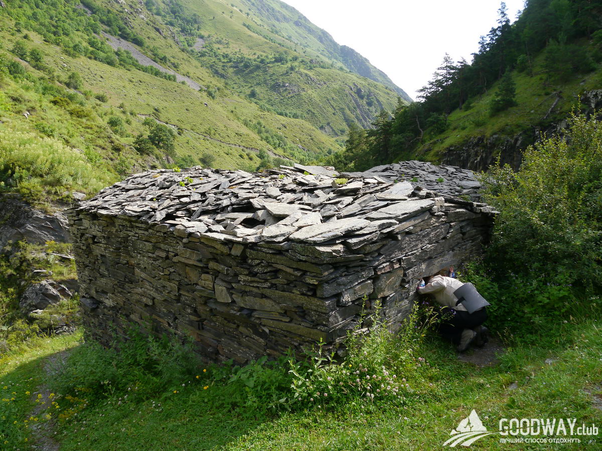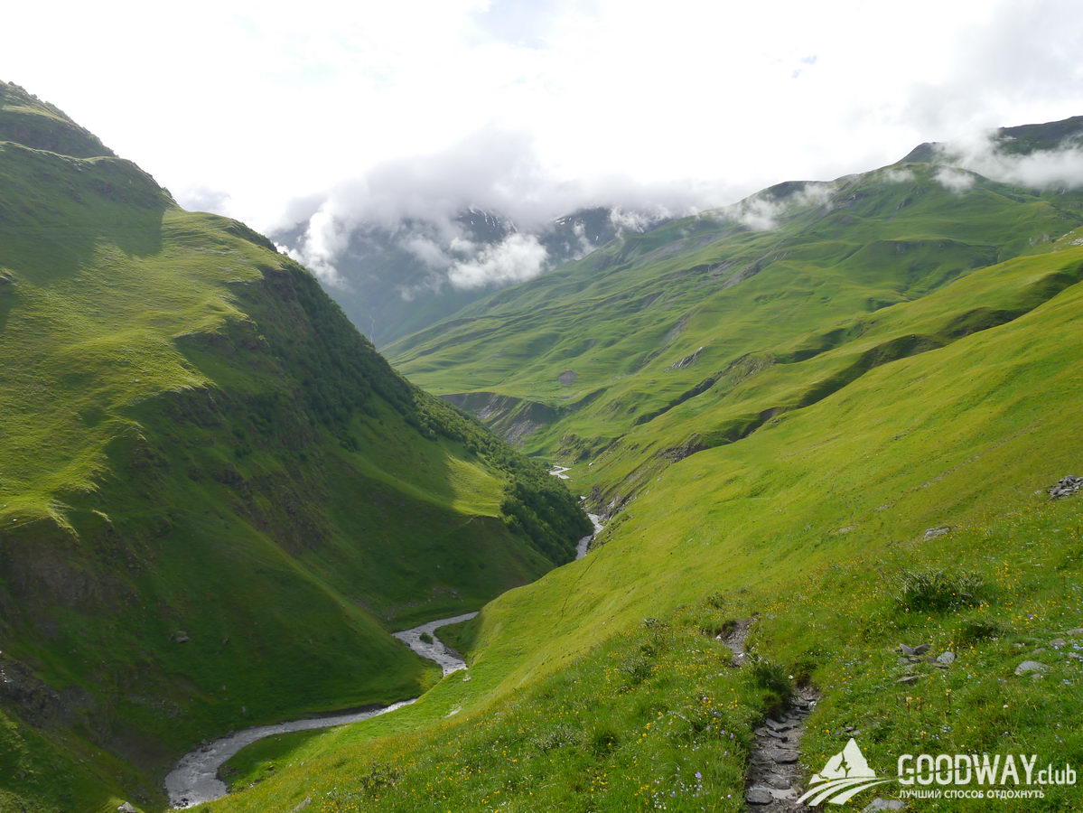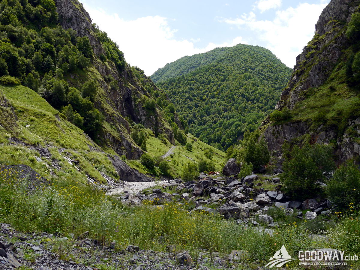 Длинный, но не сложный путь вдоль речек Квахидитскали и Пирикитской Алазани. Пройдём несколько брошенных сёл, пока не появится Гиреви – первое Тушетское обитаемое село на нашем пути. Ночуем в гостевом доме. Тёплый душ, домашняя кухня, электричество. Вобщем, радуемся цивилизации! Если радоваться таким благам не захочется, можно найти укромную дикую полянку.
