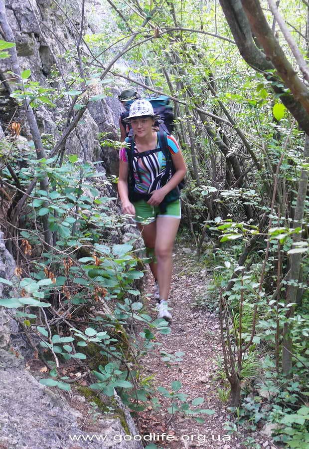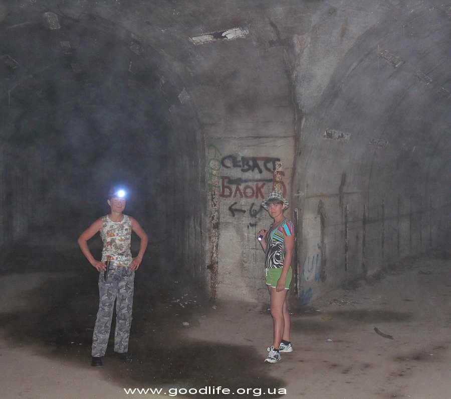 Дорога из Симферополя к поселку Морозовка (место, где начинается поход) была долгой и утомительной, хотя из окон мы лицезрели симпатичные пейзажи. Наконец-то приехали! Начинается поход, а сил то идти нет. Ноги «ватные», глупое головокружение и огромное желание прилечь где-нибудь на травке в теньке. Но нужно идти. Инструктор был прав, когда убеждал нас в том, что, свернув с дороги, подальше от цивилизации, состояние придет в норму. Я даже не заметила, куда делась усталость, когда зашли в лес. Пройдя некоторое расстояние, добрались до объекта 221. Что это за объект и зачем он был построен, читайте на сайте статью «Объект 221, или руины социалистической эпохи«. А на вид это подземные хода внутри горы, от осмотра которых дух захватывает.