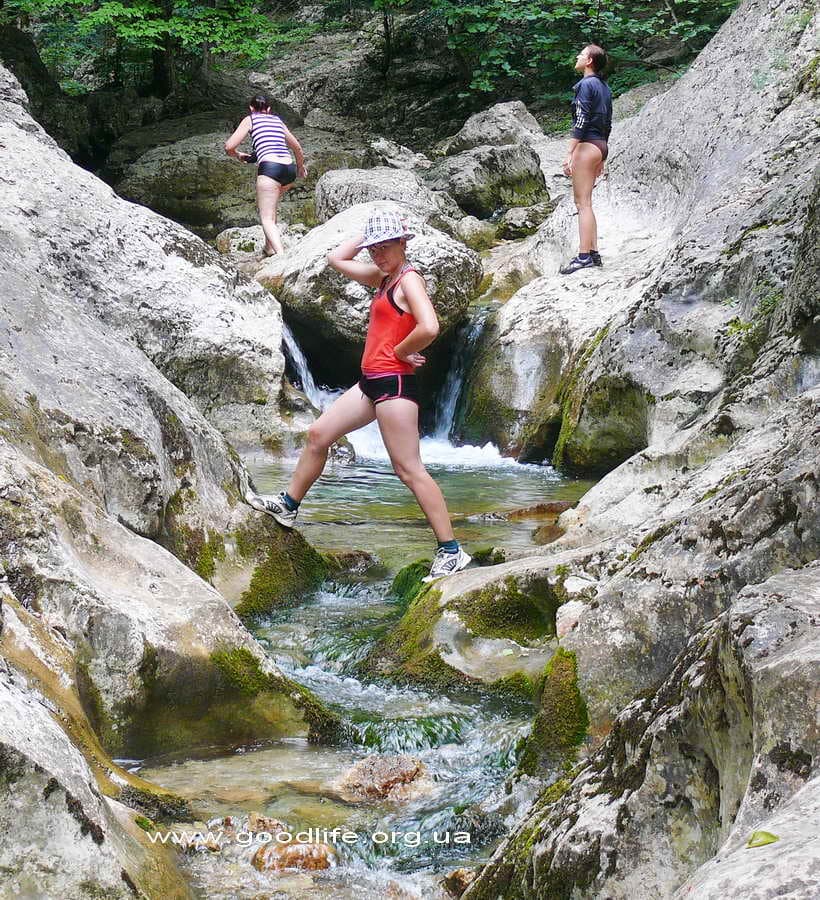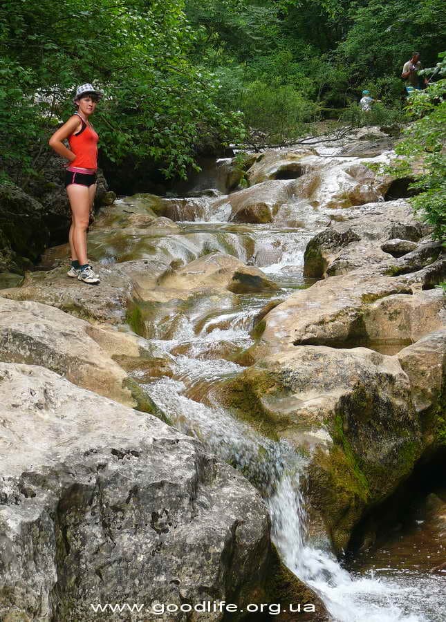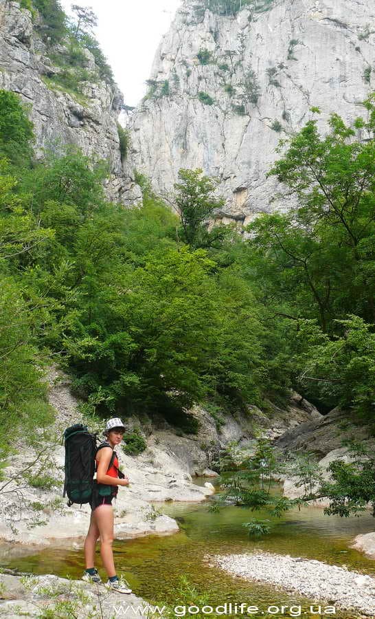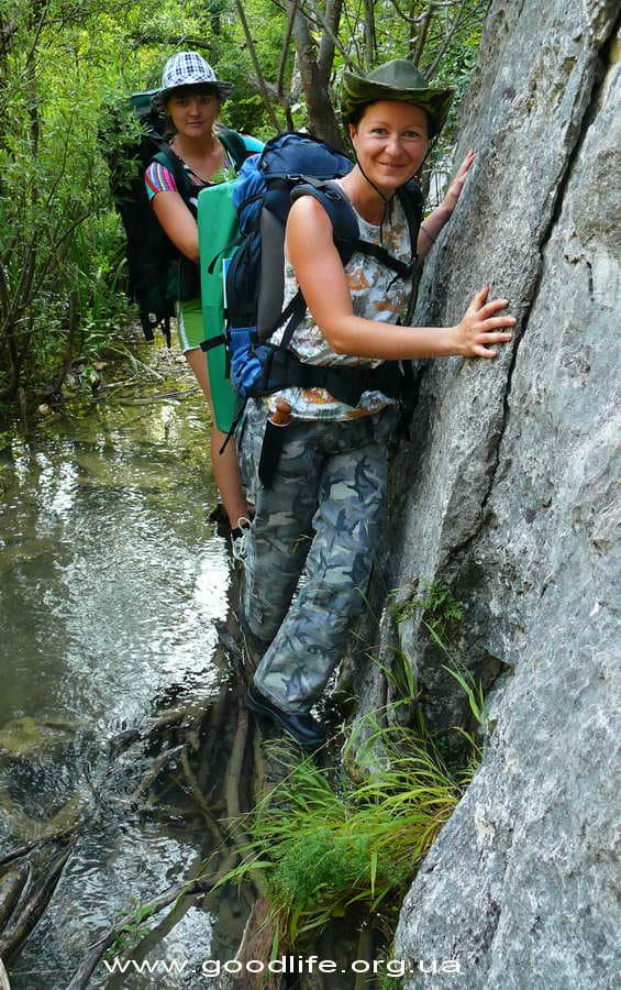 С приходом нового дня мы отправились вдоль речки. Шли, петляя с одного берега на другой. Допетляли до пещеры Узунджа. Вдосталь налюбовавшись, начали подъём наверх по дну сухого каньона. Подыматься было ну очень классно. Я получила массу удовольствия. Туризм хорош тем, что объединяет в себе несколько видов спорта, и скалолазание в том числе. Теперь я хочу попробовать себя в альпинизме.