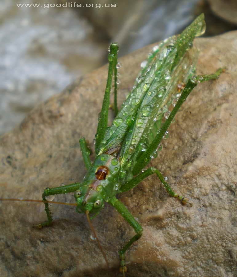 Добравшись до каньона Узунджа, остановились на ночлег в сосновом лесу. Воздух там очень приятный, чистый, нежный. Эта стоянка была богата огромными, красивыми жуками, которые поработали для нас фотомоделями, хотя и не с удовольствием, но все-таки не отказали. Возле речки на камне мы увидели большого кузнечика. Такой симпатяшка! Вода, бившаяся о камень, оставила на нем капельки, что придало ему еще большего шарма.