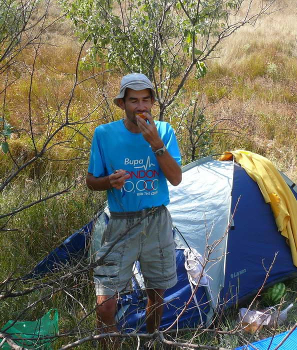 День четвёртый. Сегодня у нас — выход из голодания. Конечно, по науке нужно весь первый день выхода пить только соки. Но пережёвывать вкуснейшие крымские фрукты и выплёвывать мезгу не было никакой мочи. Начали с винограда, который нарвали ещё на второй день, проходя через виноградники. Потом были арбузы, персики, и помидоры. Потом потребовалась вторая ходка в цивилизацию за фруктами. В общем, мы сорвались… Ну как тут не сорватья! Всё такое вкусное! Такое простое, и вкусное! Обычным людям, чтобы ощутить такое удовольствие от еды, нужно пойти в самый изысканный ресторан, а нам достаточно обыкновенного арбуза.