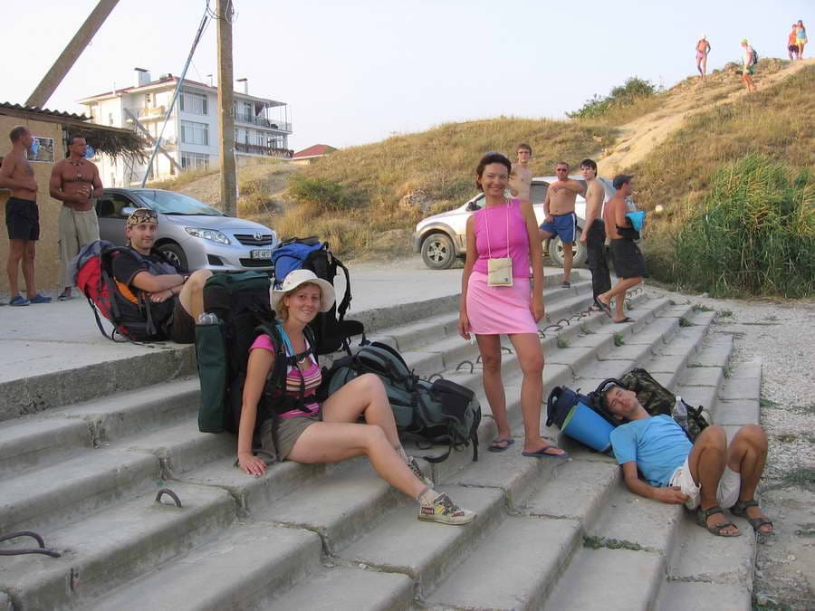 Часа через полтора мы вышли к пансионату, где и провалялись до 5 часов, укрывшись в тени сосенок. Затем катером с экскурсией отправились в Коктебель. Высадившись в его начале, нам предстояло пройти его насквозь по набережной и на другом краю разбить лагерь. Впечатлений масса, казалось, что люди вокруг только и делают что едят, одни едят а вторые готовят. От лавок со всевозможной едой, лепешек, плова, шаурмы, рядов с домашней выпечкой и тортами слюна потекла так, что сразу вспомнилась знаменитая собака Павлова. Через пару часов лагерь был разбит и нас уже поджидал утренний выход на арбузах.