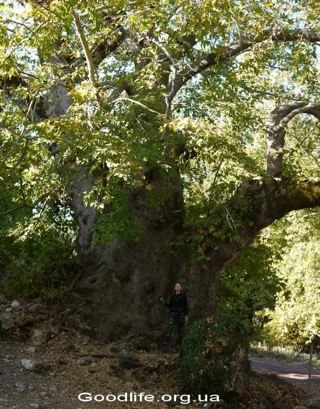 К пещере(магара) вели указатели, даже с надписями на русском. По указателям мы попали сначала к 2100-летнему платану и крепости.