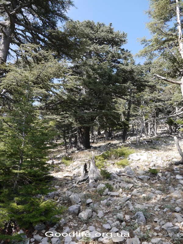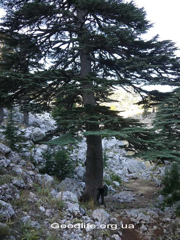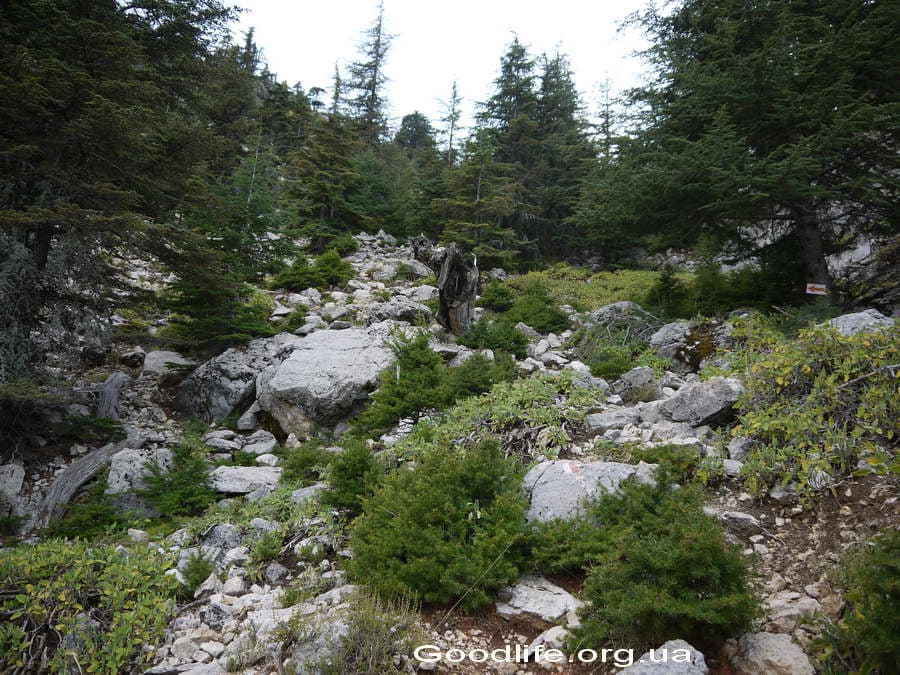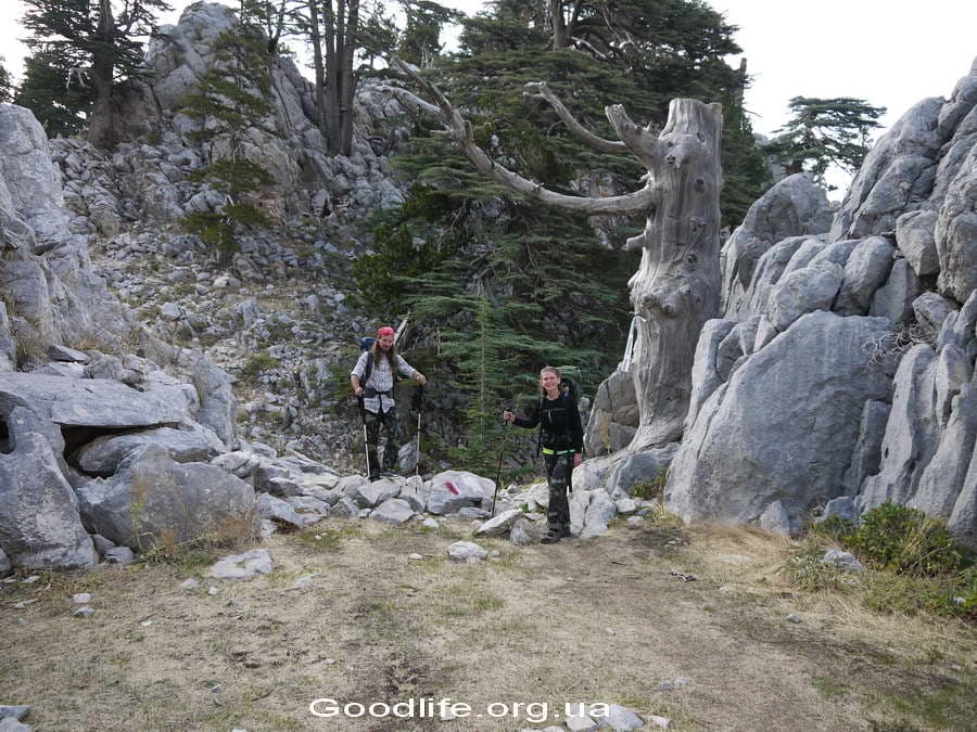 После по плану был серьёзный подъём до высоты 1800м. Пообедали на выходе из деревни и начали подъём, не особо веря в выполнение плана. С высоты 1200м сосны полностью сменились кедрами. Видимо, ливанскими кедрами, судя по шишкам. Лес приобрёл совершенно сказочно-загадочно-заброшенный вид. Если бы навстречу вышел леший-мы бы не удивились.