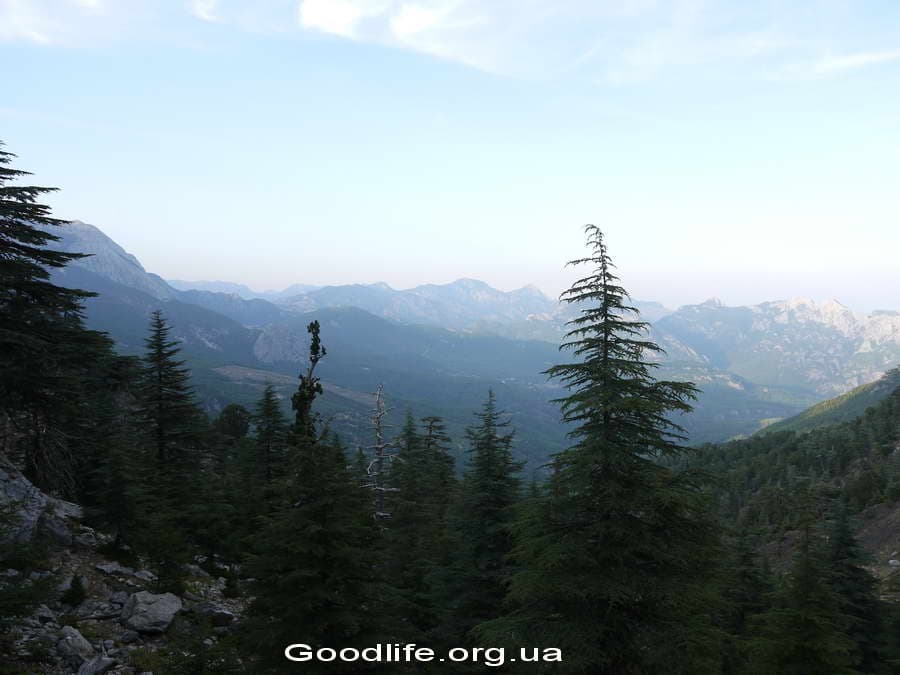 В 16:30 на высоте 1400м прошли через загон для овец, с источником. Неплохое место ночёвки. Но завтра по плану восхождение на Тахталы-Даг(Олимп), 2365м. И отсюда мы точно не успеем. Решили запастись водой и таки дойти до 1800м. В 17:30 добрели до совершенно сказочно-красивой стоянки, со всех сторон окружённой скалами и причудливыми древними кедрами. Настолько реально сказочной, что даже жутковато тут стало.
