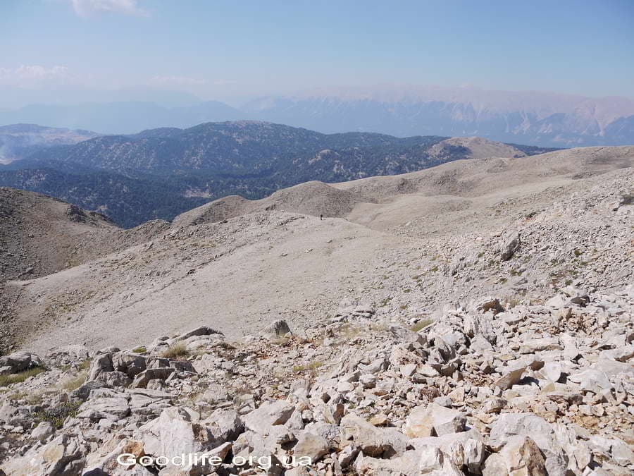 День 3-й выдался интересным и насыщенным. Мы это предвидели и вышли рано – в 7:40. Пару часов спуска – и мы в деревне Гедельме. По пути уже можно было полюбоваться на нашу завтрашнюю цель — г. Тахталы (Олимпос)