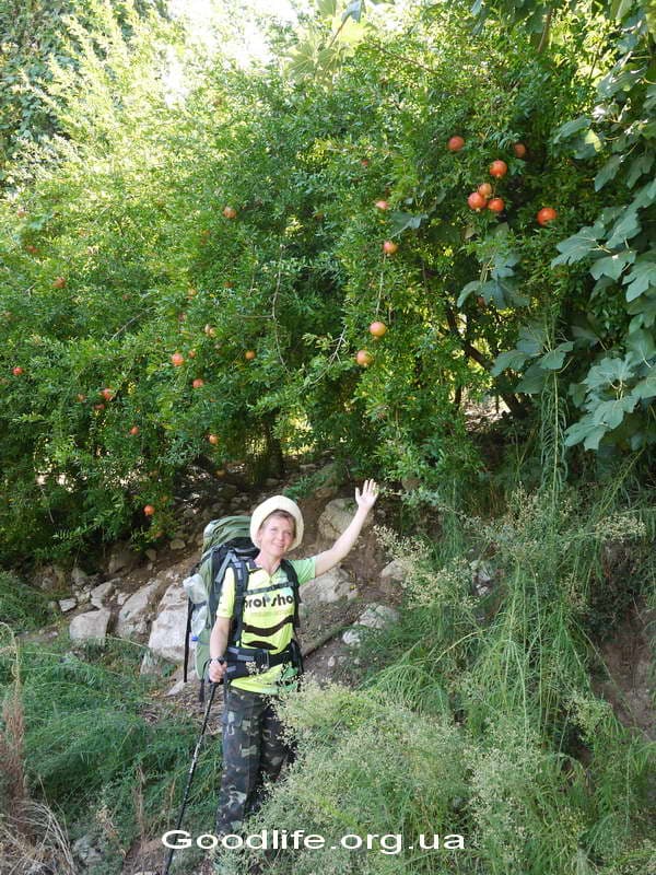 День 7. Спускаемся в Адрасан. Перед посёлком проходим гранатовые сады и теплицы, наедаемся гранатами без всякой меры, до боли в зубах.