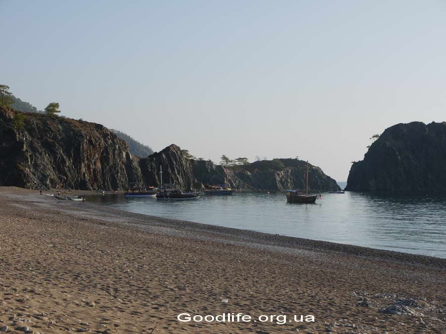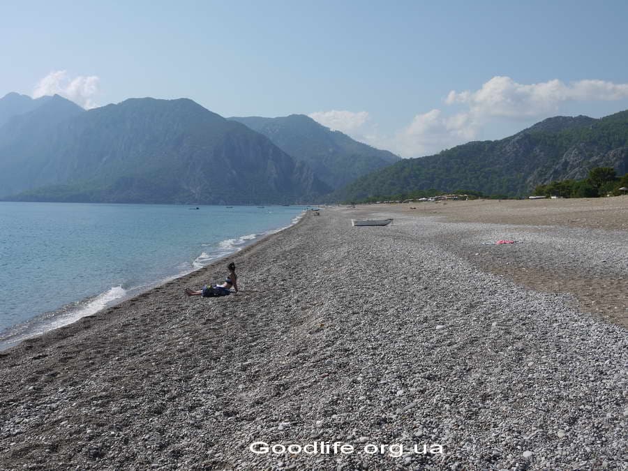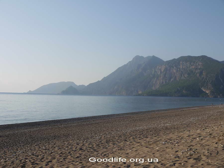 Вода такая невероятно прозрачная, как будто её вообще нет. Рыбы разных цветов и размеров кишат как в аквариуме… Народ там так и не появился, за исключением десятка человек, раскиданных по всей 4 км полосе пляжа. Турки объясняли это явление тем, что «уже холодно» и сезон закончился. Холодно?! Да они не знают, что такое Холодно! А тепло – это что же, когда испаряешься и даже в воде нельзя охладиться, потому что там +35? Вот и отлично, что такой сезон закончился! Значит наш начался! По утру обнаружилось много овощных дешёвых магазинов, мы славно наелись помидор, морковки, винограда, слив. Чистота пляжа объяснялась вовсе не тем, что тут не сорят. Сорят, к сожалению. Но весь пляж ежедневно убирается вручную — вплоть до последнего окурка и крошки хлеба.