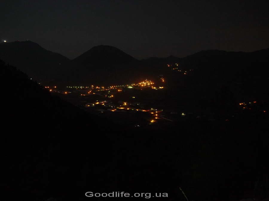 По описанию нам предстояло забраться на 650м, г.Мусала, где будет вода у домика пастухов. Забравшись совершенно без запаса воды на эти 650м к 6 вечера, домика и воды там не обнаружили, а г.Мусала была в 2 км через ущелье. Я набрал бутылок и пошёл на поиски воды. Тропа вывела к заброшенным развалинам похожим на Олимпос. Повсюду битая керамика, следы раскопок. Нашёл два древних колодца, но они были наполовину закиданы мусором и камнями, воды видно не было. Колодцы эти (точнее, бассейны) были просто вырезаны прямо в скале, в форме бутылки высотой метров 10. Упади туда- выбраться без помощи не удалось бы. Решил я лучше вернуться к рюкзакам, чем блуждать в потёмках по этим развалинам. Силы ещё были, и решено было спускаться, пока не дойдём до воды, при свете фонариков. Уж очень пить хотелось, до завтрашнего обеда терпеть было бы пыткой. Счастью не было предела, когда после 15 минут спуска луч фонаря неожиданно выхватил из темноты какой-то домик! Неужели тот самый? И вода тут есть? Сразу все трое рассыпались в разные стороны в поисках воды. «ВОДА!!!» Этот возглас означал очень большую радость для всех и окончание нашего сегодняшнего пути. 13 км с набором 650м – вполне достаточно для перехода в полдня. Избушка оказалась вполне сносной – с широкой деревянной кроватью на 3-х человек, дверью, крышей и даже набором посуды для костра. Причём, из алюминия и нержавейки. Лежат себе, и никто их не берёт, а только пользуются и даже чистят после себя. Заночевали на поляне возле избушки с видом на ночной Адрасан. Чудесная ночёвка!