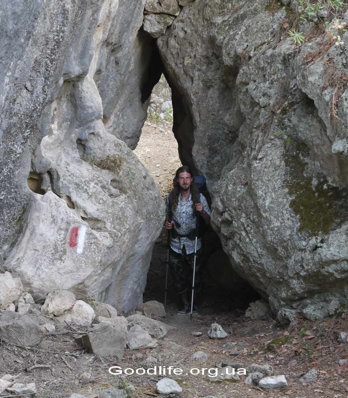 Ни древнее дерево (подумать только, оно росло ещё задолго до рождества Христова), ни крепость никак не охраняются, не подписаны, вход свободный. Попытки узнать, а где же пещера, ни к чему не привели. Тут мы впервые почувствовали языковый барьер. Раньше хоть на кривом английском можно было изъясниться, а тут даже английского никто не знал. Вернулись назад и пошли дальше по деревне. Нашли ещё один указатель на пещеру, на этот раз он вывел именно к пещере. Вход по 4 лиры. Нам сказали, что всё оборудовано, свет есть. Да, сначала были лестницы, свет, перила. А потом- чёрная дыра – нужны свои фонари-и лезьте хоть на целый день. Но уже без сопровождения экскурсовода и под свою ответственность. Фонарей конечно, мы не прихватили. Да, указатели и оборудование пещеры тут, что называется, «по-турецки».