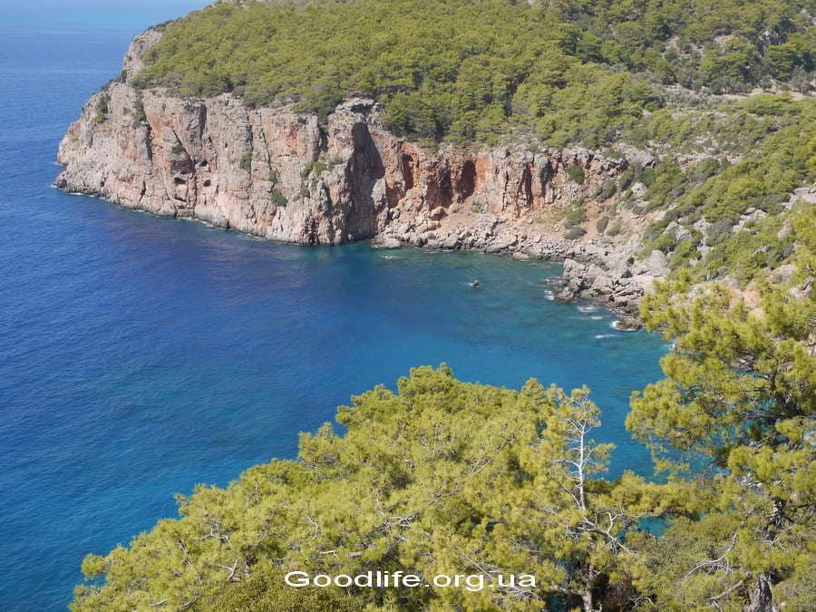 День 8. Не очень хорошее безводное утро. Собрались и пошли. Пить нечего, а значит и есть нельзя. К 11:00 спустились к маяку на м. Гелидония. По пути встретили группу австралийцев – более 10 человек. Спросили их, есть ли вода на маяке. Оказалось, он давно не работает, там никого нет и воды тоже нет. Видно, такое горе отобразилось на наших лицах, что австралийцы быстренько нашли литр воды и выдали нам. О, счастье! Как оказывается легко стать счастливым! На маяке мы нашли ещё 1.5 литра воды в трёх бутылках – валялись под деревом. Попробовали — вполне нормальная, снова она мгновенно растворилась в нас без остатка. Пообедали. А жизнь-то налаживается! Теперь можно нормально осмотреть маяк. Действительно красиво и место живописное.
