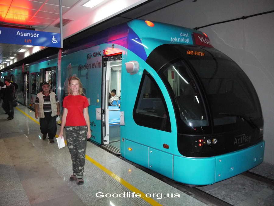 В Кумлудже сразу сели на автобус в Анталию (95 км, 2 часа, 10 лир), в 3 часа дня мы уже в Анталии. Тут нам нужен автобус до Гёреме. Оказалось, единого расписания нет, зато есть штук 15 разных компаний, и в нашем направлении как минимум 3 возят, но по разным ценам и в немного разное время. Самая дешевая (из найденных мной) компания (Aksaray) хотела по 35 лир за билет, остальные – по 40. С дешёвой договориться не удалось – менеджер совершенно не знал английский, и хотел мне объяснить какие-то важные подробности поездки, которые я понять не смог. Купил билеты там, где всё было понятно – в Metro. По 40 лир, отправление в 21:30, прибытие в 7:30. 10 часов в пути. Пообещали высокий комфорт и телевизор у каждого свой. Отлично! Теперь есть несколько часов, которые можно потратить на знакомство с Анталией. Сдаём рюкзаки в камеру хранения (по 4 лиры). Особенно нам нужны были карты Турции и газовый баллон для горелки. Куда ехать и где их искать – неизвестно. Никакого общественного транспорта рядом с автовокзалом не было видно. Тут же обратил внимание на указатели «Antray – Tramway». Точно! Это то, что нам нужно! Дёшевый, медленный (успеем порассматривать магазины) и наверняка идёт в центр.