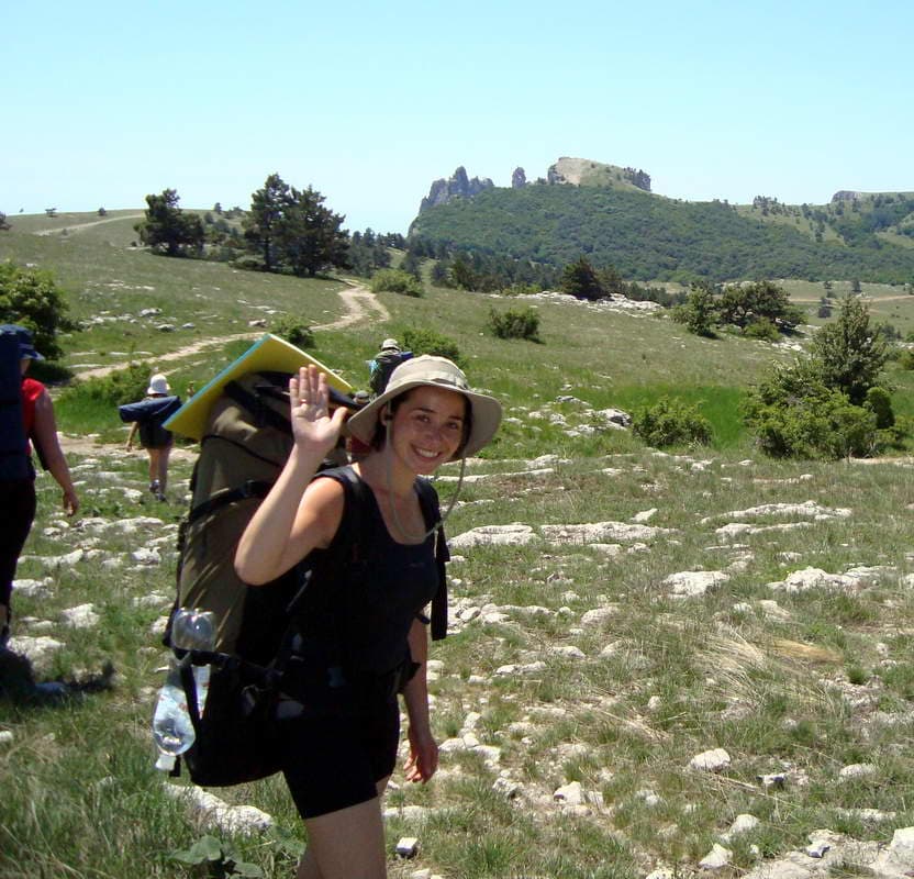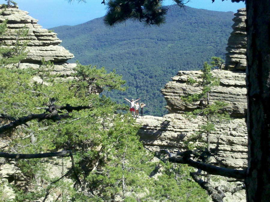 В 7 утра началась первая утренняя тренировка по йоге. На удивление, усталости и боли в мышцах после подъема не ощущалось. Мы позавтракали овсянкой и ароматным чаем с горными травами и двинулись в путь. Вскоре оказались возле самого шумного и грязного места на ай-петри – базара. Но обедать мы сели возле Геофизической пещеры. Часть нашего веселого состава посетила пещеру, другая часть – решила сходить на смотровую площадку и попутешествовать по базару. Для некоторых оставались еще свежие воспоминания холодной ночи с воскресенья на понедельник, и они решили приобрести себе теплые шерстяные носки. Лично же я боролась со своим желанием накупить восточных сладостей. Мой трезвый рассудок одержал победу над неуемным желанием натрескаться сладкого. Это была моя маленькая победа. Далее мы двинулись к горе Ат-Баш. Шли мы задорно и весело, поскольку для большинства это был первый день пешего пути.