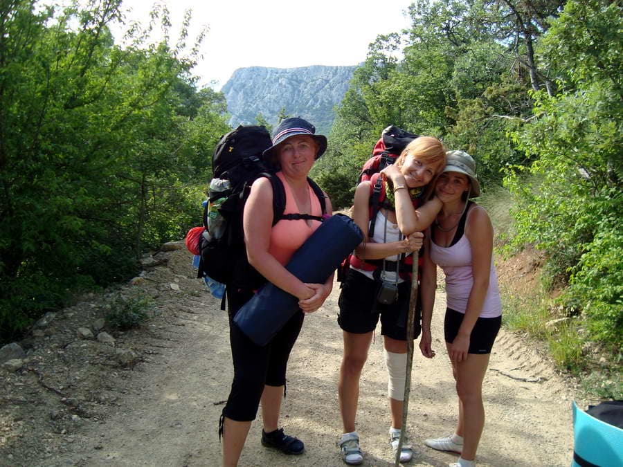 После прибытия поезда в Симферополь, мы, как и полагается, встретились возле Голубого фонтана. Я сделала глупость и не упаковала свой каремат сразу в рюкзак еще в Николаеве, поэтому пришлось выкладывать все содержимое рюкзака на скамейку. Андрей сразу заметил, что я наперла кучу вещей. Однако, я свято продолжала верить, что это все лишь необходимое, без чего я ну никак не обойдусь. Вскоре мне стало ясно, что я глубоко заблуждалась. И помог мне это понять подъем по тропе Таракташ!!! (высота подъема 700 м.). Уж там я поняла, что полный тюбик зубной пасты, целый рулон туалетной бумаги, полный тюбик детского крема, маникюрные ножнички, пинцет для выщипывания бровей, бальзам для волос и прочая ерунда – все ерунда! Кроме того, за все последующие 7 дней я всеми этими девайсами так и не воспользовалась (ну, кроме пары граммов зубной пасты).