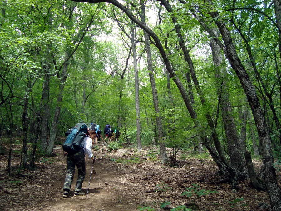 Утренняя йога ознаменовалась приветствием диких кабанов. Однако, на долго они не задержались. Лишь пробежали мимо нашего лагеря. Взбодрившись на тренировке, мы отправились в путь. Нас ждала нелегкая дорога…Но наш мозг был так затуманен перспективой того, что вскоре окажемся у моря, что готовы были ко всему. Итак, мы вышли на тропу «Седых волос» (оригинальное название Андеря Кравчика). В нашей же интерпретации это была не иначе как «Козья тропа».