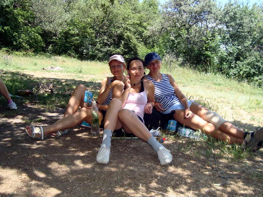 Ленка со Светой даже обновили себе гардероб. Их майки оказались уже настолько не «носибельны» (особенно майка Лены после ночной сушки над костром), что требовалось предпринять срочные меры. Погуляв по местности, мы направились на гору. Нам предстоял подъем на 300 м. Как ни странно, у меня открылось второе дыхание. Да и после Такракташа этот подъем для меня супермена был просто детской горкой))) Однако, тяжело пришлось отдельным участникам нашего коллектива, кто не знал, что такое Такракташ. Поднимались мы со смехом и слезами. Наша Ритуля начала сдавать. Но мобилизовав всю свою энергию и затратив энергию мамы Оксаны, она добралась наверх. Ритуля, ты держалась Молодцом!