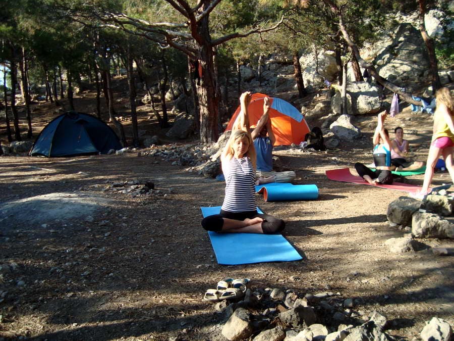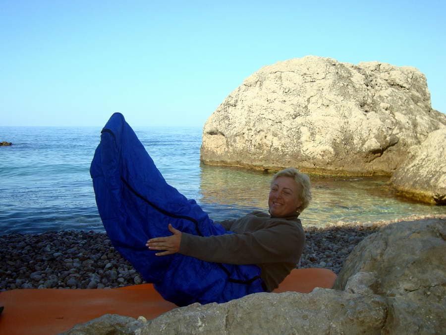 Недалеко от нашей стоянки был спуск по знаменитой Чертовой лестнице. По пути к этому спуску открывался изумительный вид на побережье. Это просто невозможно передать словами, что ты чувствуешь, когда сидишь на краю скалы и тебя обдувает приятный ветерок. Я еле заставила себя идти на вечернюю тренировку. Так хорошо мне было на этой скале….Должна отметить, что на йогу дошли не многие. Во время занятия усталость от перехода не давала в полной мере насладиться асанами. Так и хотелось переименовать название нашего йога-клуба из «Гармонии» в «Спартанец». Уж очень тяжело давалась отстройка асан.