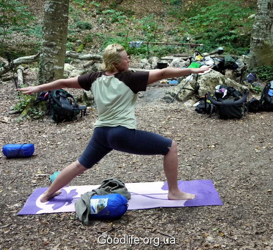 Йога в походе. Чистая природа Крымских гор – это самое лучшее место для йоги. Ни один зал с самым лучшим оборудованием не сравнится с ковром листвы и чистым горным воздухом в лесу. В каждом походе было особо приятное место для йоги, хотя все стоянки отличались своей красотой и своеобразием. В первом походе – это березовая роща, в которой наши «березки» составляли конкуренцию для деревьев. Во втором походе – это можжевеловый лес. Земля прогрелась настолько, что передавала свое тепло телу, даже через коврики, а легкие наполнялись горьковатым ароматом столетних можжевельников. А в третьем походе поразила положительная энергетика деревьев в лесу, находящегося на берегу горной реки. И сегодня, придя в зал для занятий йогой, закрывая глаза, я нахожусь на тренировке в самых красивых уголках Крыма.