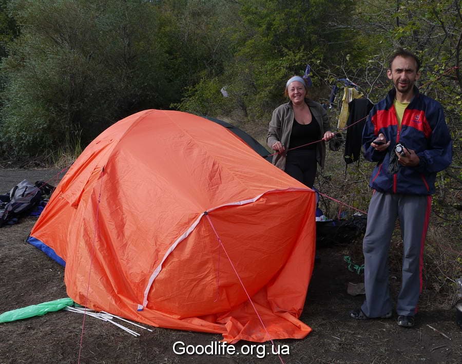 Нет правил без исключений. В йога-походах было негласно введено правило: «В йога-походе дождя нет!». Первых два похода это правило работало. Третий поход радовал 5 дней прекрасной солнечной погодой, но исключение пришло неожиданно. Из-за гор появилась чёрная туча, от которой первую половину дня мы пытались убегать, не делая даже остановки на привал. Изрядно промокнув, мы добежали до стоянки, где нас накрыл ливень. Но дождь – это полбеды, налетел ураганный ветер, который по прогнозам был 12 м/с, а на самом деле, превышал 20 м/с. Мы в суматохе поставили палатки и навес, который не выдержал порыва ветра первым. А палатку установили неправильно, потому что самые большие порывы ветра пришлись аккурат на несущие дуги палатки, которая скорее была предназначена для отдыха в сухую и безветренную погоду, а никак не для условий шторма. Но на этом наши мытарства внутри палатки не закончились. В половине третьего ночи у палатки оторвало дугу. От порыва ветра вырвало все колышки. Не взлетели мы только из-за веса, находящихся в палатке трех экстрималов: Сережи, Нателлы и меня. Однако, после удаления сломанной в 4-х местах дуги уменьшилась парусность палатки и мы, наконец, заснули, просыпаясь время от времени от порывов ветра. Наутро все участники ночного происшествия изрядно шутили и смеялись, хотя ночью было вовсе не до смеха. Главный вывод: «Нет правил без исключений: правила – для всех, исключения – для составителей правил».
