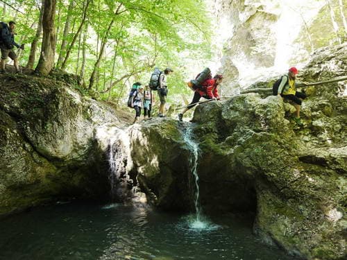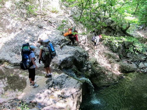 Каньон порадовал множеством переходов через речку, нежаркой тенью и интересными препятствиями. Особенно «жестокие» были прозваны нами «бабушками» и «прабабушками» (последнее означает «зашкаливающе страшно»), так как вспомнить только «маму», преодолевая такое, недостаточно.