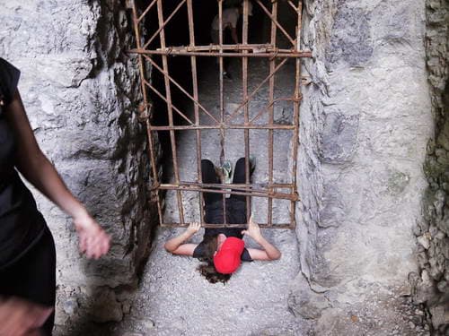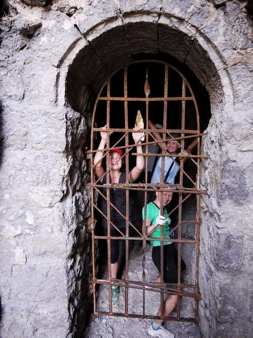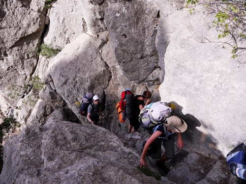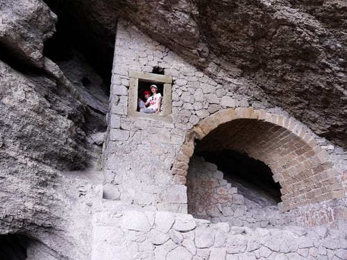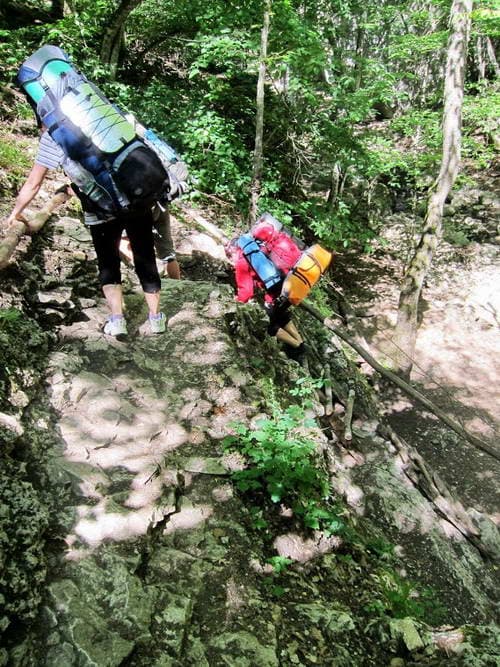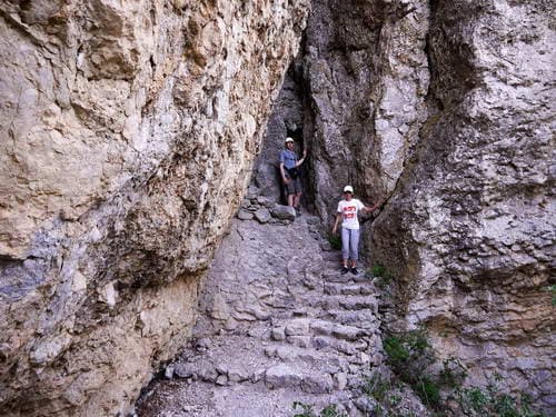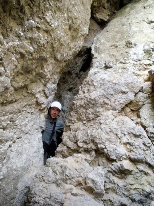 Пролезли через узкую щель между скалами…