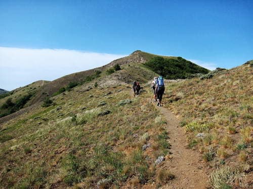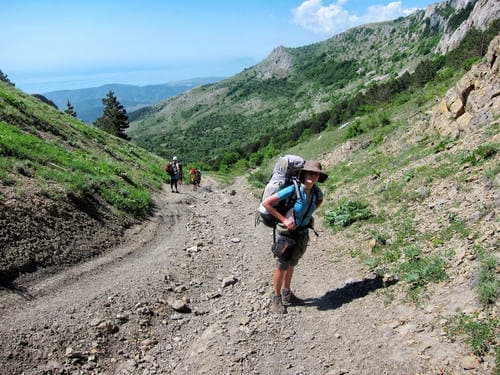 На следующий день под жаркими лучами крымского солнца мы топали по Орта-Сырту. Тропа была то ровной и стабильной, то пролегала по склону и «радовала» сыпухой.