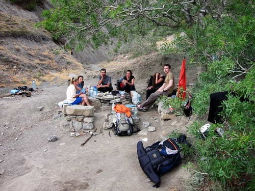 Стоянка была уютной, но практический безводной: источник, на который мы рассчитывали, почти пересох. В кустах то и дело шныряли дрозды, мыши и другие какие-то довольно шумно обсуждающие нас жители леса.