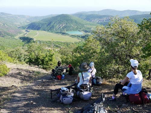 У самого синего моря наша группа разделилась. Позитивная Инна отправилась искать жильё, дипломатичный проводник Андрей поспешил на поезд домой, а мы со всемогущей Олей, неунывающей Аней и энергичной (и самой молодой участницей похода) Настей, отобедав у Жорика, отправились в Судак. Но это уже совсем другая история, и мы её расскажем в другой раз 🙂