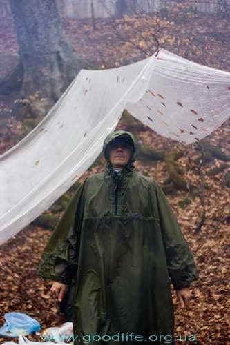 В магазине «Вертикаль» недалеко от ж/д вокзала купили Галочке подарок — дождевик-трансформер. Его можно надеть просто на себя, можно и поверх рюкзака. Очень удобно.
