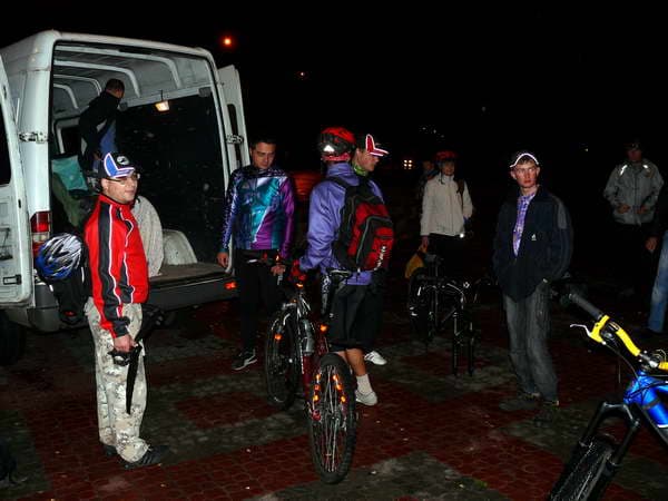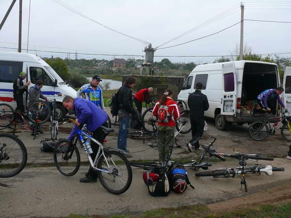 Ехали мы двумя микроавтобусами и легковушкой. Один бус — грузовой был до отказа набит велосипедами. Погрузка у зоопарка, в 6:30 мы выехали.
