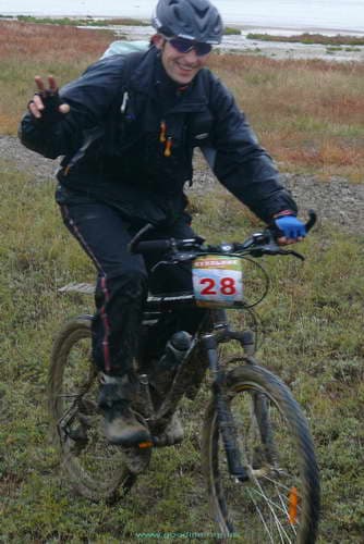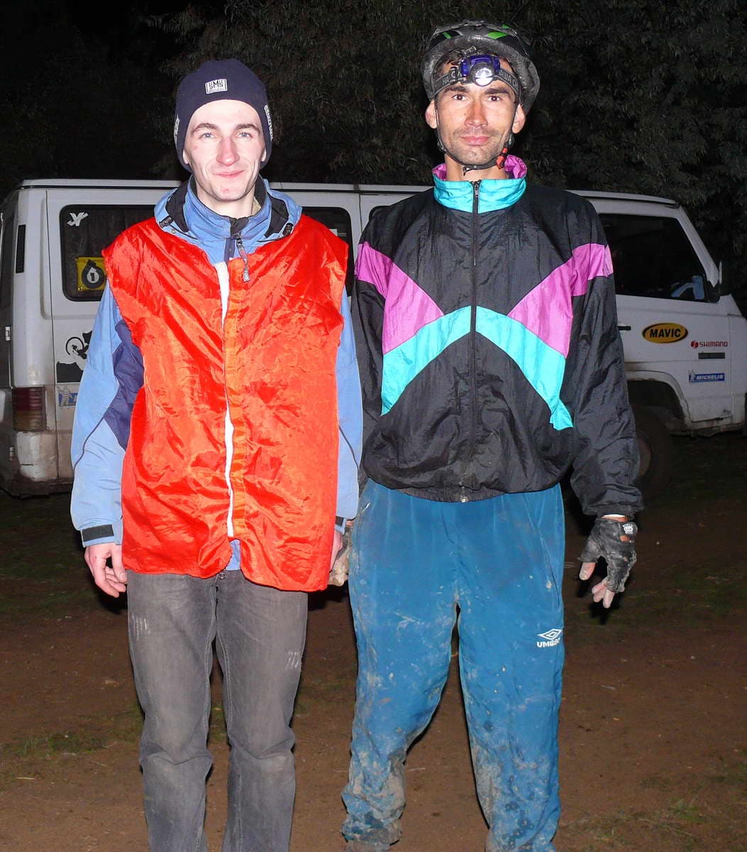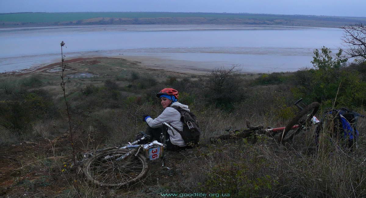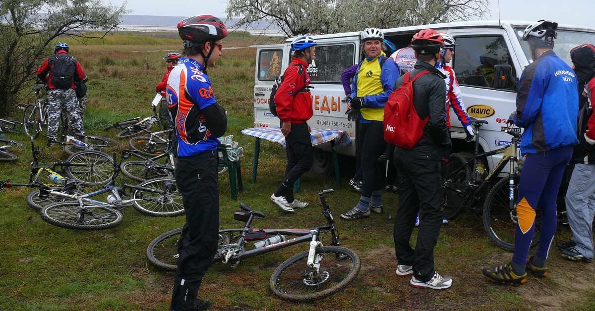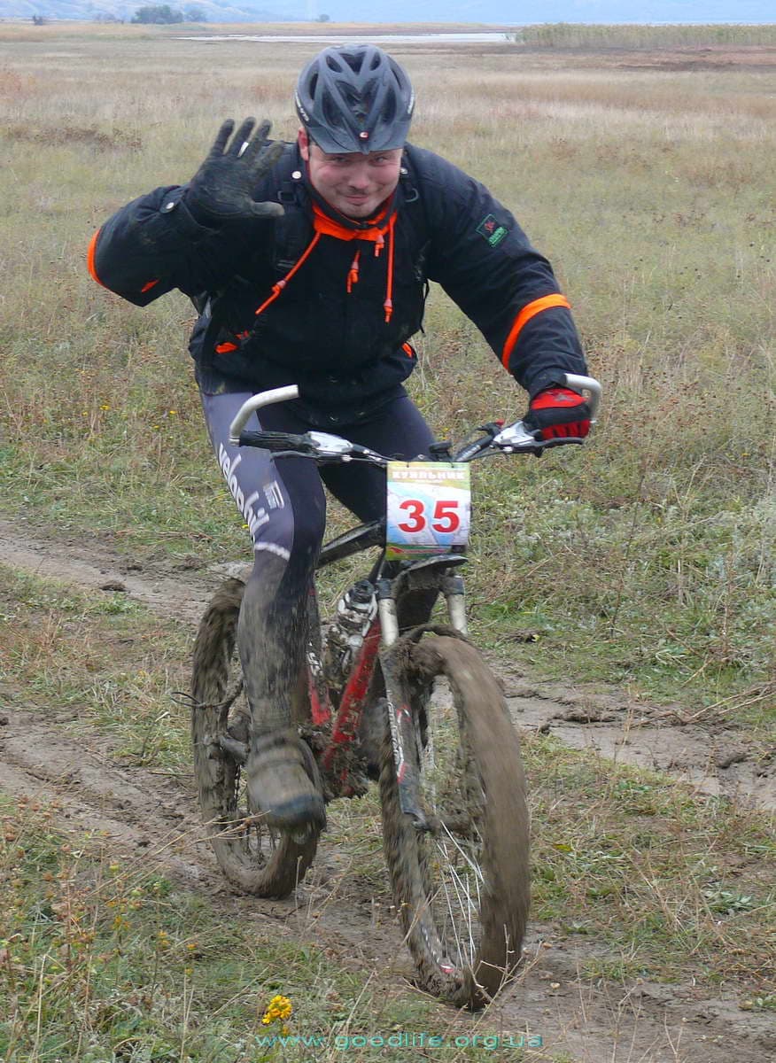 Догнал одного одессита, он совсем был скисший. Повернул не туда, потом возвращался 2 км. И всё это пешком… Без антипрокола, клеился по пути 4 раза. Повезло ещё. Могло быть хуже. Доели с ним мой сыр, пошли дальше. Позвонили мне организаторы, предложили выслать за нами эвакуатор. И, соответственно, дисквалификация. Ну нет! Не доедем, так донесём велики! Осталось каких-то 5 км. Откуда-то появились силы, и добрую половину тех 5 — ти км даже удалось проехать. Тут уже грязь налипала меньше, зато были лужи. Как их объезжать — ничего не видно, по парочке проехал — даже колёса отмылись, и ничуть не застрял. Но в темноте не видно и глубины, и в очередной я выкупался уже по колено. Тут конечно, застрял. О!!! Какие-то огоньки, люди… Финиш! Я предпоследний — обогнал того парня минут на 10. Но я доехал! Моё время — 10:03. Десять часов пешеходно-велосипедного похода вокруг Куяльника по грязюке. Такое запомнится навсегда.