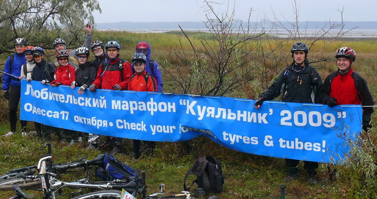 Веломарафон «Куяльник» проводится ежегодно, в середине октября. Трасса представляет собой разомкнутое кольцо грунтовых дорог, тропинок и даже полей длиной 68км вокруг лимана Куяльник в Одессе (подробнее здесь) . Куяльник — 2009 состоялся 17 октября. Целый день перед этим и в день гонки над трассой старательно работал дождь. В итоге из ожидавшихся 150-180 участников явились 113. Я был в команде от Николаева. Нас было 23. Итак, с самого начала: