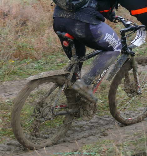 10 км «трассы» вернули назад ещё человек 6, уже по причине поломок. В основном вылетали перекидки, по кускам и вместе с крюками. Ехать по траве получалось уж очень медленно, а по дороге можно было ехать только быстро. Тогда грязь отлетала, и чиститься можно было реже. Но необходимо давить на педали что есть мочи. У некоторых мочи было больше, чем запаса прочности у техники. Хотелось выбрать оптимальную передачу, но забитые грязью перекидки отказывались работать. На излишнее упорство они также отвечали поломкой. Глядя на всё это, выставил сзади 3-ю, спереди 2-ю, и старался не трогать перекидок. Хотя иногда переключался спереди на 1-ю. Приходилось пинком ноги по механизму скидывать цепь вниз. С подъёмом обратно проблем не было, но на 3-ю поднять не удавалось.