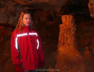 У водопада в любом случае нужно перейти на левый берег. И дальше — к Красным пещерам. Официально вход 35 грн., экскурсия 1 час. Даже не заикнулись, что нас мало, взяли за вход по 30 грн(не было сдачи), экскурсия длилась 1.5 часа. Попался разговорчивый прикольный экскурсовод. Понравилась подводная река. Пещера интересная, хотя с Мраморной по красоте не сравнить. Исследованных ходов — 23 км, из них оборудовано для просмотра 800м.