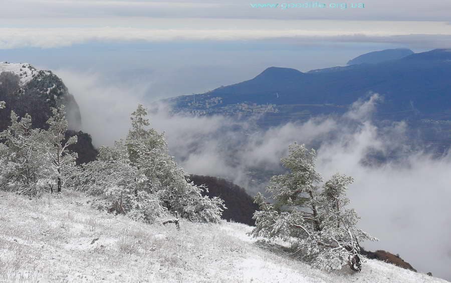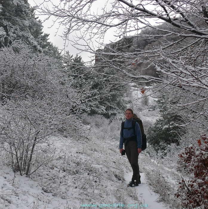 Выше водопада Джурла начал попадаться снег, а на стоянке Джурла мы уже попали в настоящую зиму. Тропа уводила всё выше, и у Сев. Демерджи снега было ещё больше.