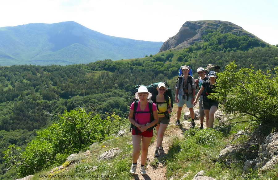 Кушать особо не хотелось, пообедали черешнями, апельсинами (чтобы избавится от лишнего веса в рюкзаках), шоколадом. Набрались сил и «все выше, и выше, и выше» по тропе «седых волос» к вершине Северной Демерджи.