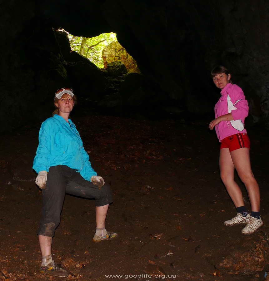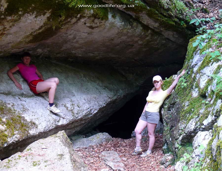 Мы шли, рассматривая местность, любуясь прелестями природы, и вдруг Андрюша обнаружил новую, незнакомую для него пещеру, у которой было четыре входа. Я впервые в жизни видела такое чудо не по телевизору, а в жизни. Пещера! Настоящая пещера! Не большая, но интересная. Не буду скрывать, когда входили вовнутрь, страх присутствовал. Но любопытство сильнее.