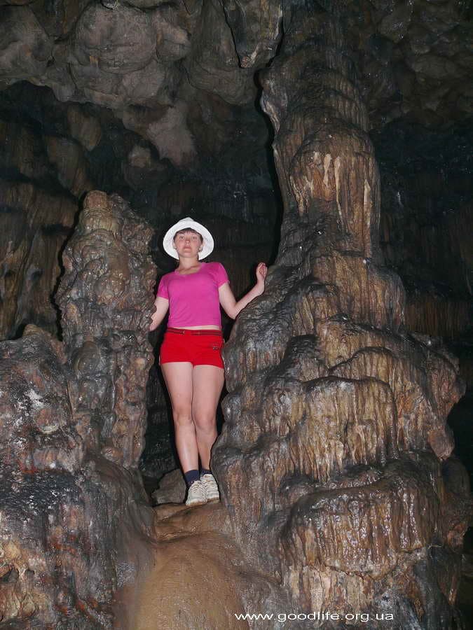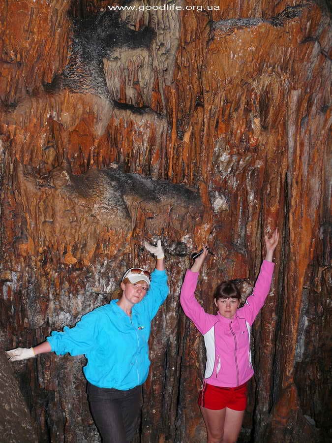 Я шла в пещеру не подозревая о том, какие эмоции меня там охватят. Постепенно спускаясь в нее и осматривая стены, охватывает удивление: «Как была создана такая красота?». Каждая стена неповторимая, не похожая на другую. Смотришь на одну и туже стену с разного ракурса и кажется что это новая, еще краше предыдущей. Эмоции словами не передать. Моему восхищению и восторгу не было предела. И тут Андрюша предложил отключить фонарики и почувствовать себя заодно с пещерой. Это чувство непередаваемо. Вокруг безнадежная тьма. Ты, и больше никого и ничего не видно. Стали осторожно ощупывать стену и медленно продвигаться вдоль неё. Кажется, должен охватить страх и паника, но почему-то ни того, ни другого не было. Было море чувств необыкновенной силы. Ах, какой прекрасный, новый, нераскрытый, тайный Мир с сумасшедшей энергией!