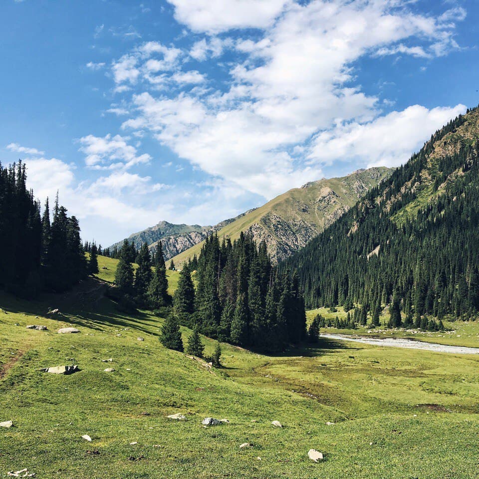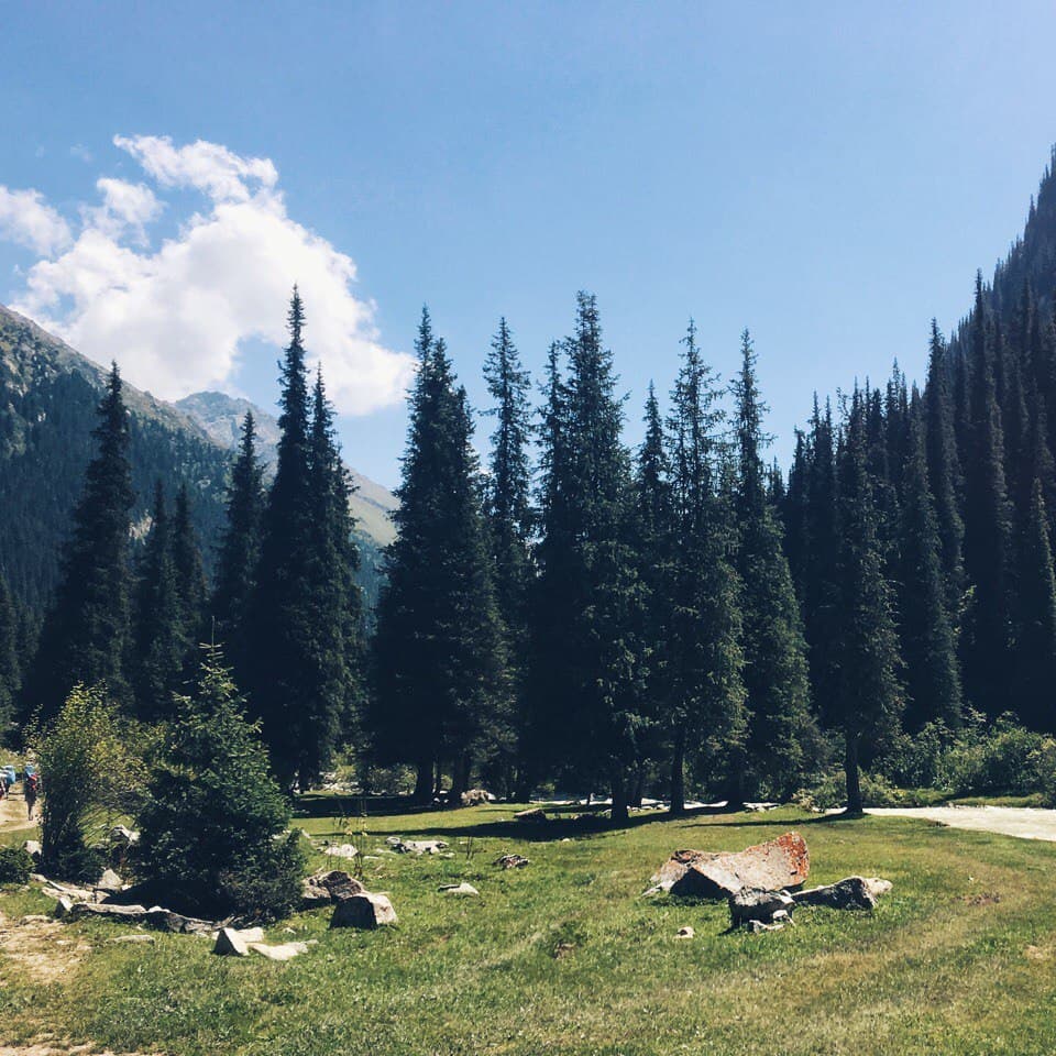 Смена пейзажей с альпийских лугов на каменистые, затем луговые и лесные! Поразила своей красотой тянь-шаньская ель, водится, как можно догадаться из названия, только там.