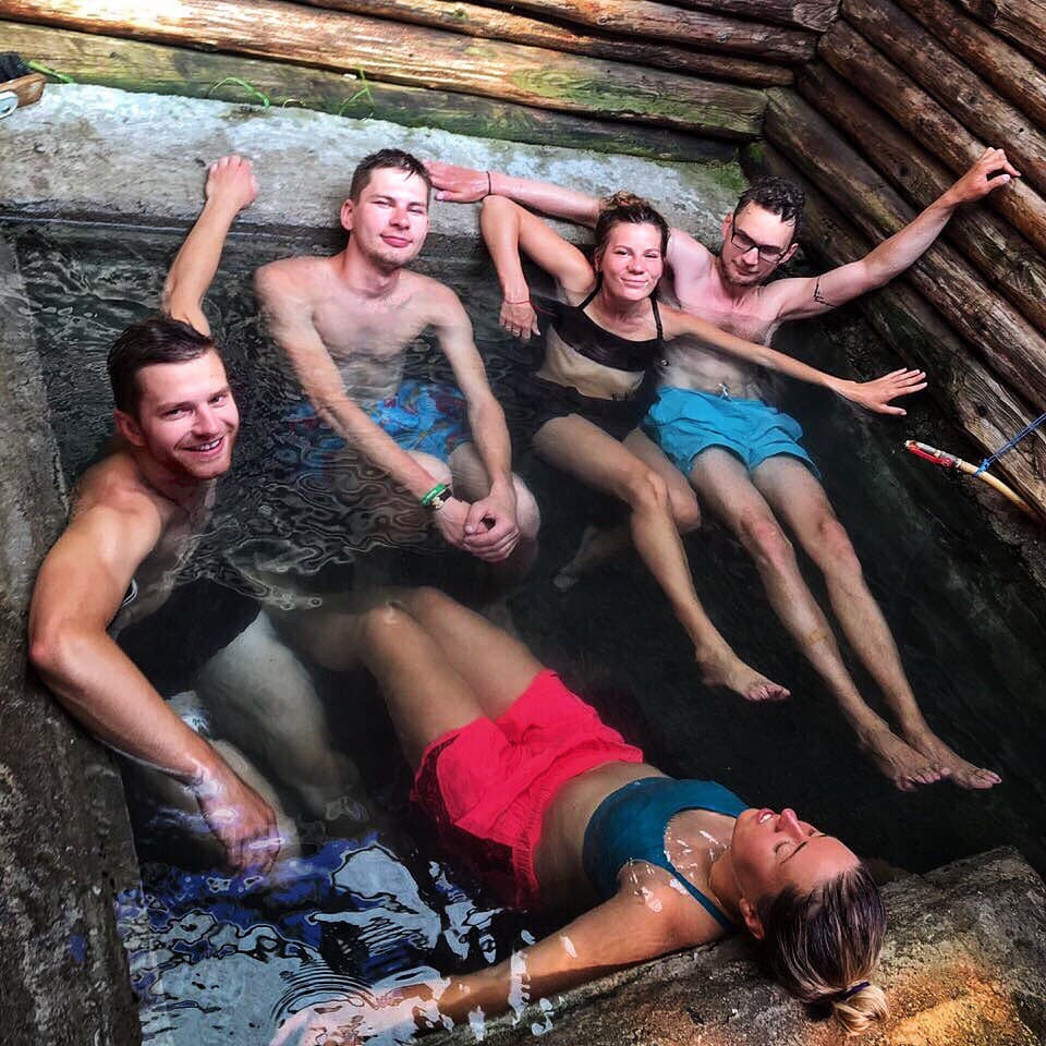 Какой же был кайф и визги восторга при погружении в горячую воду купальни! В ванне с горячей водой непрерывно можно находится минут 5, затем в ледяную воду горной реки, она прям за дверью, затем обратно в купальню греться, так повторить несколько раз и будет тебе счастье!!! Как в баньке, только вместо парилки горячая ванна!