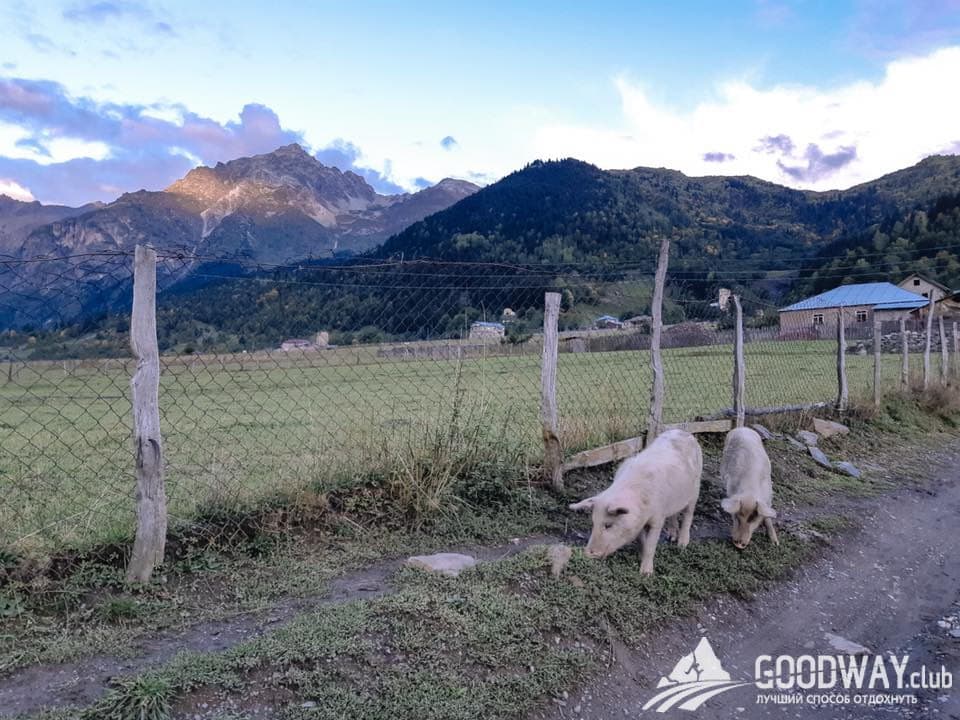 С 4-го дня наш маршрут был построен таким образом, что мы переходили из одного населенного пункта в другой, и каждый вечер ночевали в новом гостевом доме. Были на нашем пути очень уютные, ухоженные дома с удобными кроватями и горячим душем. Но было и такое, что приходилось спать в шапках или мыться в ледяной воде. Здесь как в русской рулетке – не знаешь, что тебя ждет. Грузины чаще всего очень гостеприимные и щедрые люди. Поэтому голодовки, которой я так боялась, не было, а наоборот- пир на весь мир. Завтракали и ужинали мы почти всегда очень плотно. Обед устраивали на привале из того, что нам раздал наш проводник в начале похода — орехи, шоколад, сыр. И еще заваривали чай из собранной по пути полезной и вкусной травы. Если честно, то нашего дневного перекуса мне иногда не хватало для восполнения энергии. Но скорее это моя индивидуальная особенность, я просто очень много ем. Таким как я советую взять с собой небольшой запас походной еды. Я вот не взяла, но меня очень выручали батончики из соседнего рюкзака )) Daniel купил, привез, а мы с Кристиной их с удовольствием съели. Daniel, привет! ?А еще в Сванетии растет черника и малина, но после нас, кажется, уже ничего не осталось.. )