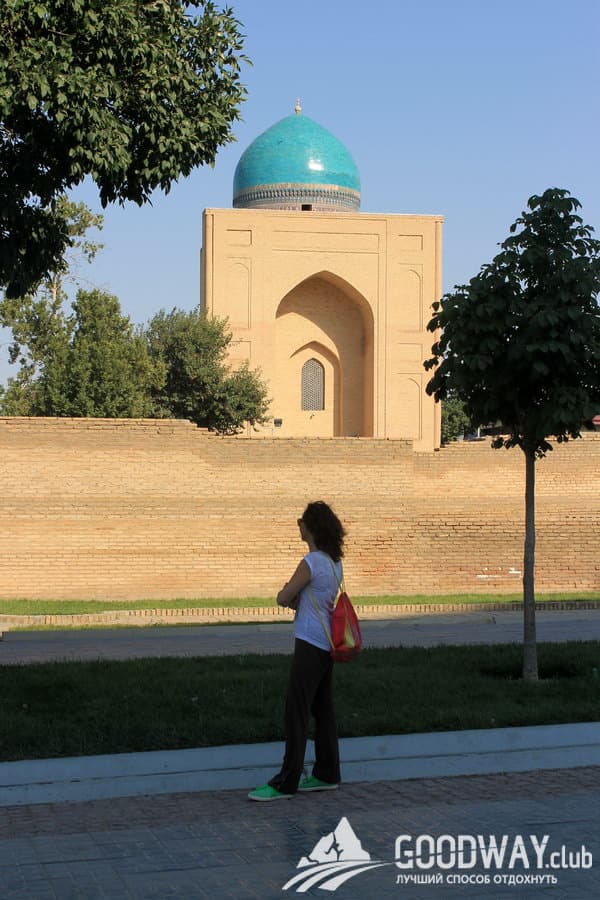 Шедевр зодчества Средней Азии. У него необычный рифленый купол с 64 гранями – по количеству лет пророка Мухаммеда. На куполе очень красивая мозаика. Форму купола скопировали в 1913 году в Санкт-Петербурге, для мечети возле Петропавловской крепости. А больше таких в мире нет.