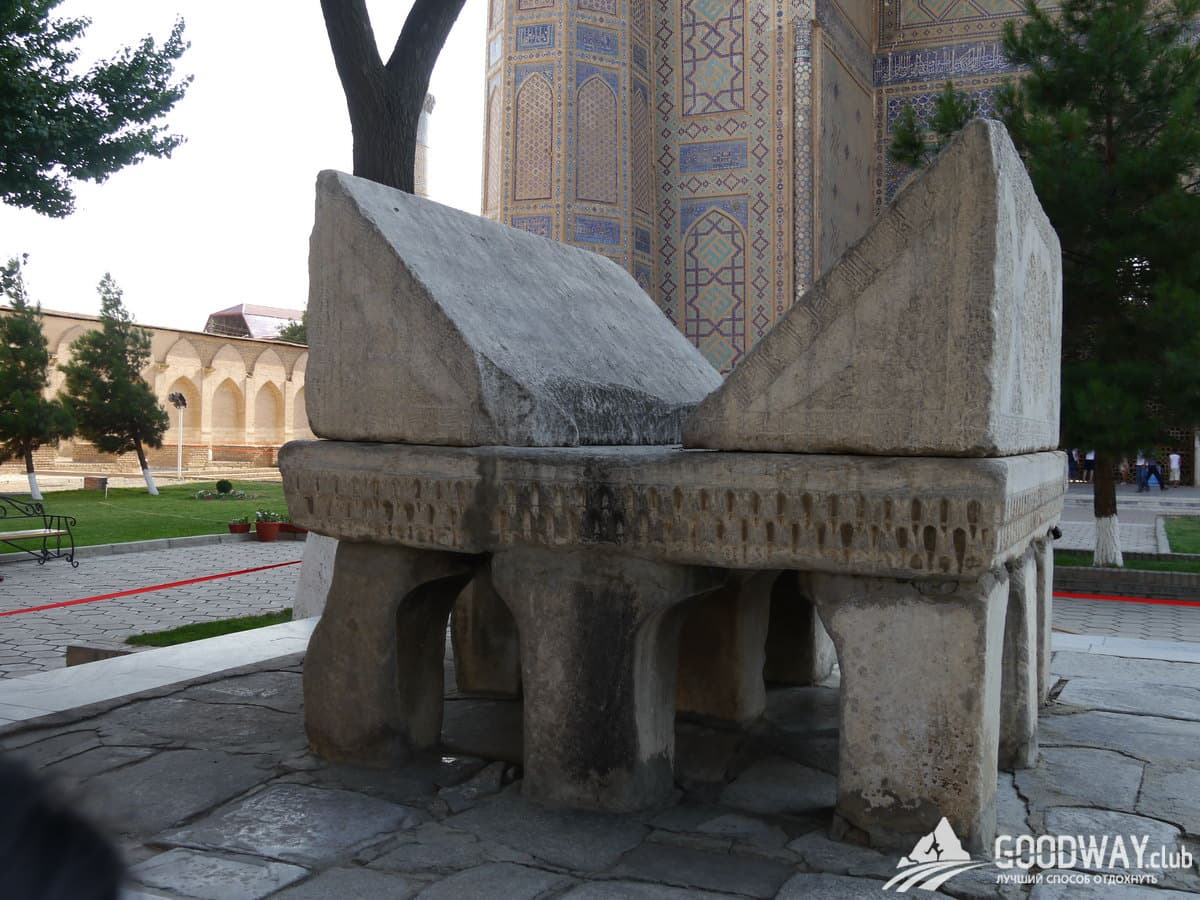 Надгробная плита на могиле Тамерлана из нефрита, это бывший трон Кабек Хана — потомка Чингисхана. На плите надпись: «Всякий, кто нарушит мой покой в этой жизни или в следующей, будет подвергнут страданиям и погибнет». Говорят, что в 1740 году иранец Надир-шах забрал её и сделал ступенью на свой трон, после чего на него посыпались несчастья. Советники убедили его вернуть плиту, которая по дороге раскололась на две части. А 19 июня 1941 года могилы вскрыли и антрополог М. Герасимов восстановил портреты по черепам. Тогда же узнали, что Тамерлан был необычайно высоким для своего времени – 180 см, и хромал – отсюда и прозвище – Тимур-Ленг (Тимур Хромой). А всего через три дня началась Великая Отечественная война…