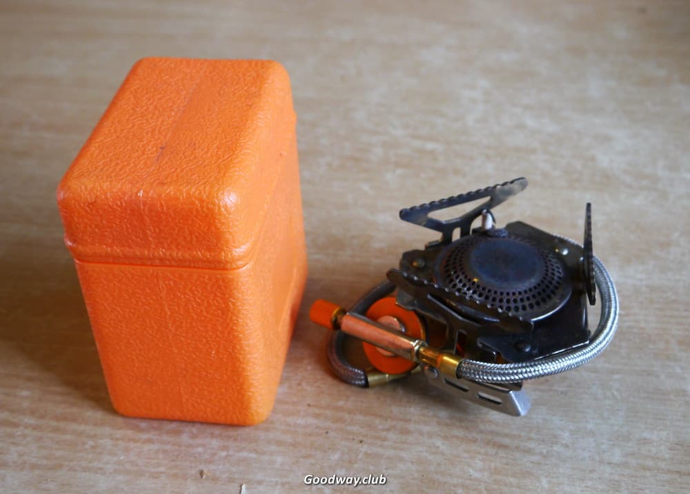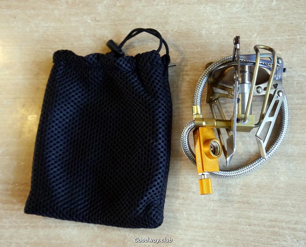 Конструкция: накручиваемая, очень надёжная, компактная и мощная горелка. Складывается в полотняный мешочек, давить её в собранном состоянии можно как угодно, ничего не сломается.