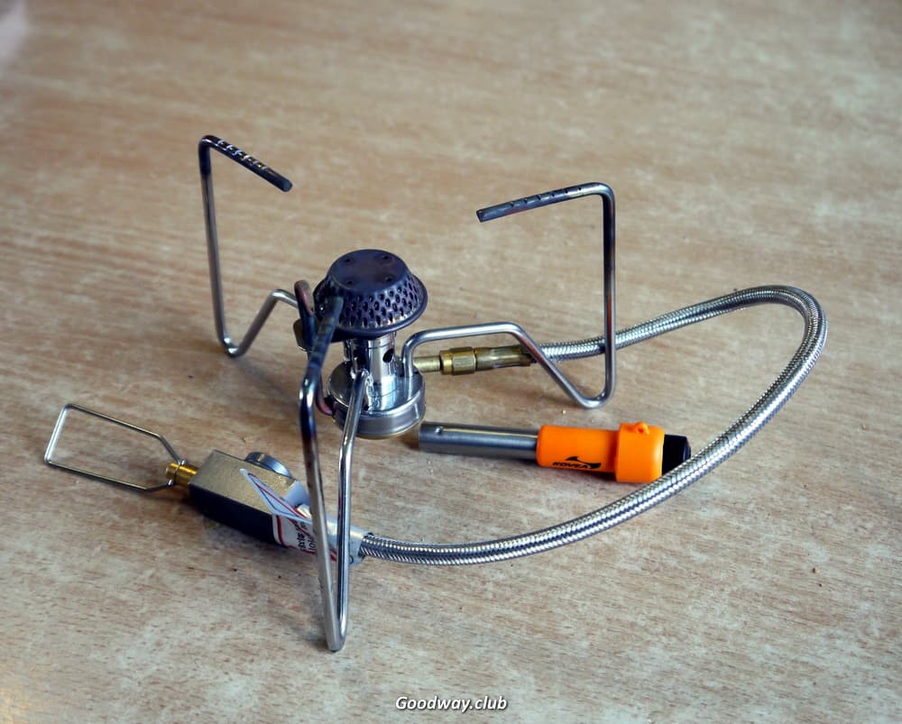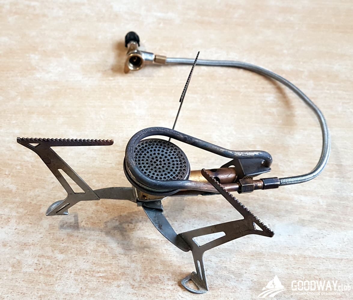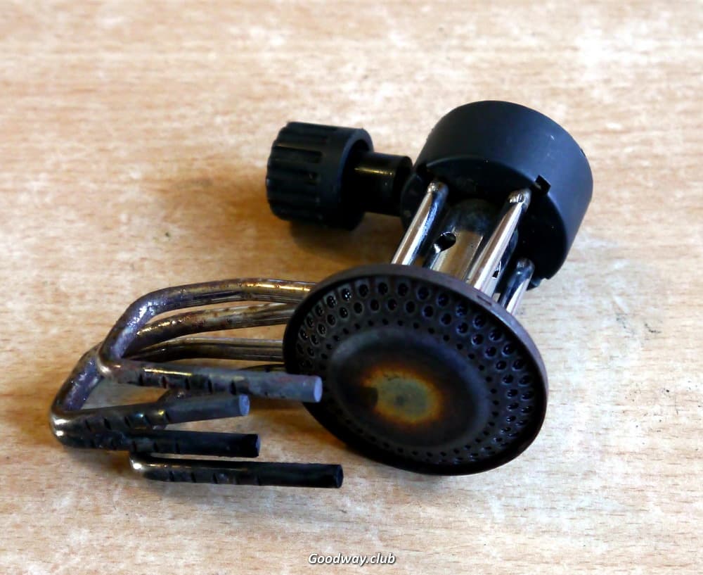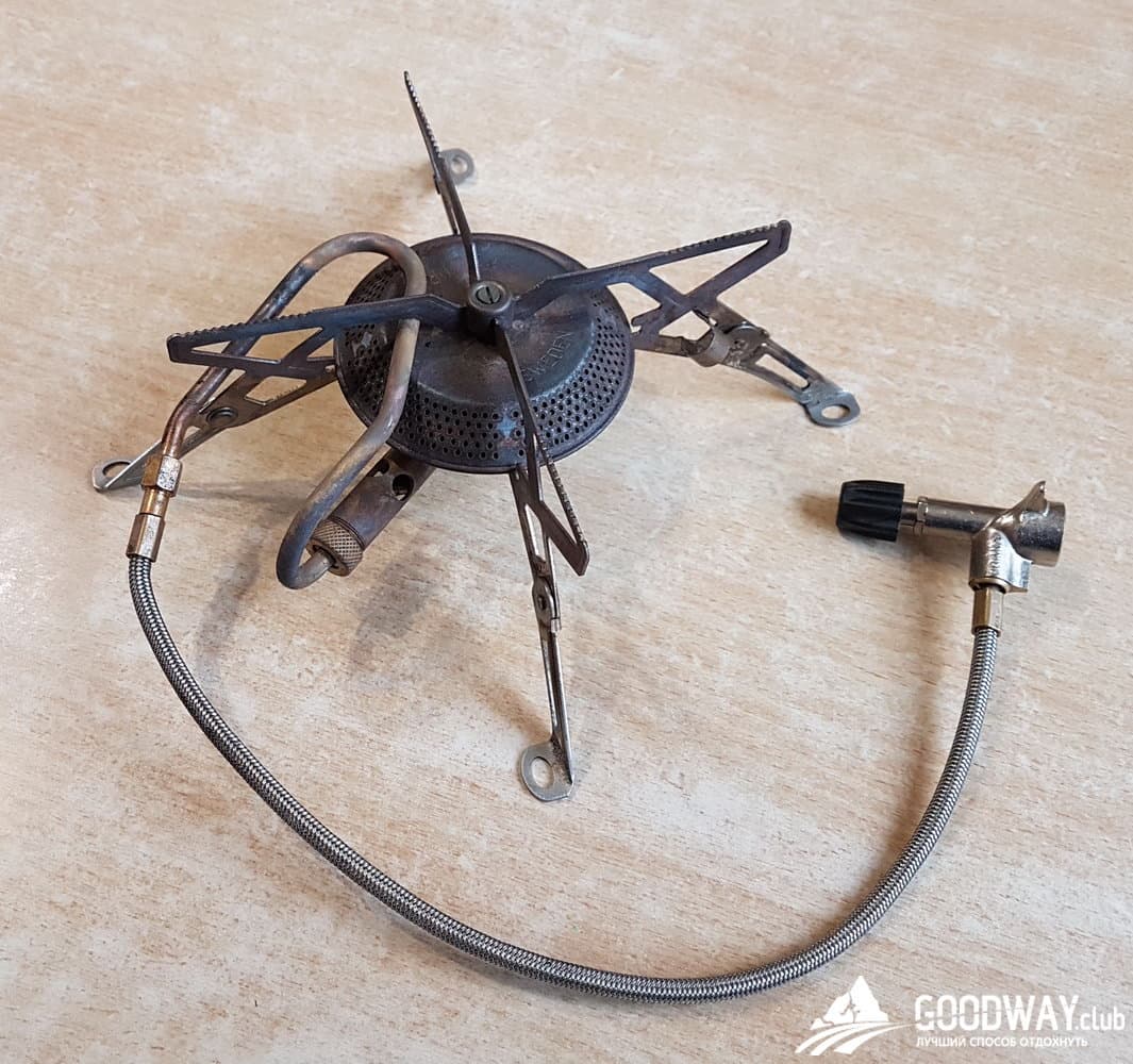 Через год использования сгорели стальные сетки в конфорке. Разобрал, поставил новые. Стало хуже, но работало. Потом начал травить шланг. В общем, горелка для 10 походов.