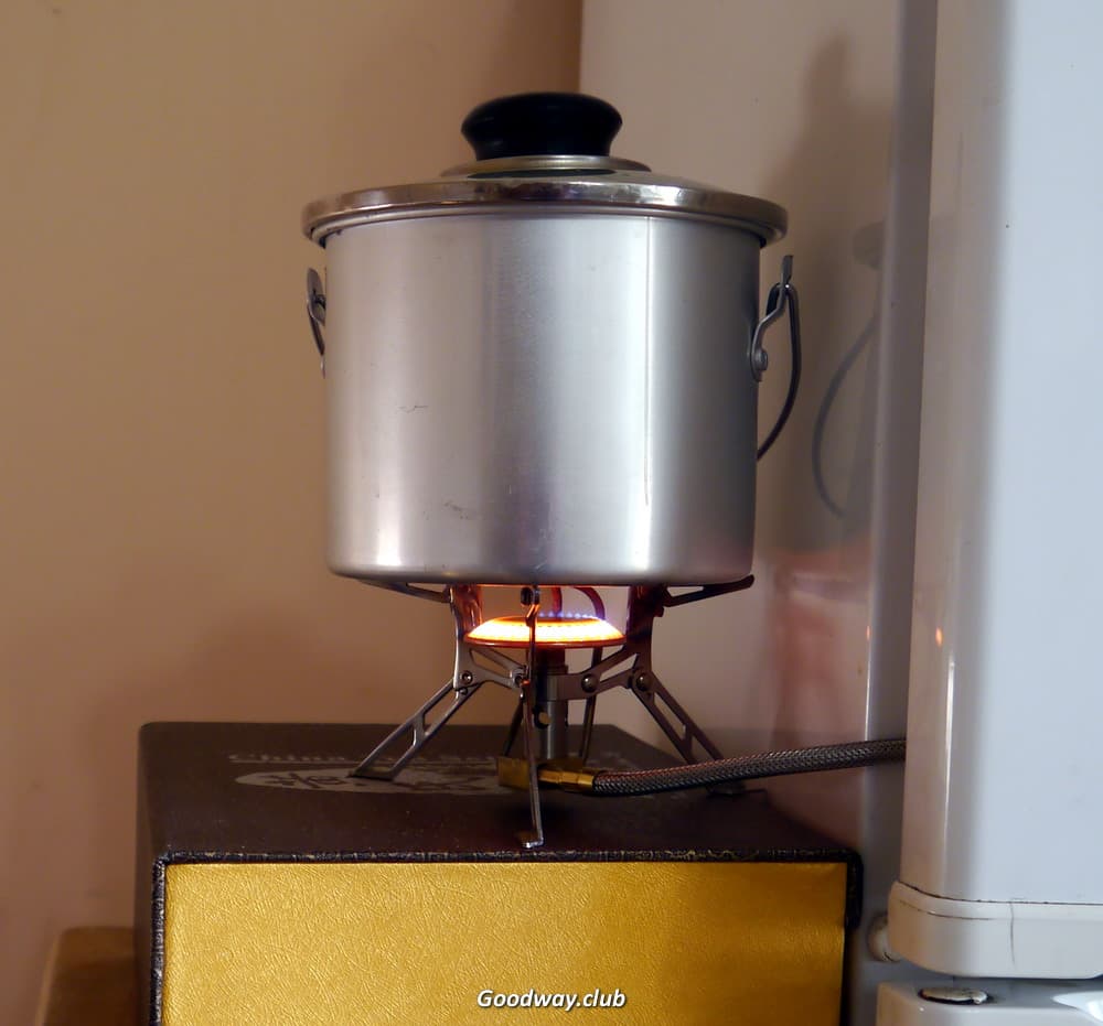Работа: мощность большая, даже больше чем у FMS 118, хотя производитель заявляет обратное. Достаточно для кастрюли 6л. Кружка тоже хорошо разместится и экономно подогреется, т.к. конфорка небольшая. Отсутствие подогрева газа делает невозможным использование горелки при температуре ниже -5. Шланг длинный, баллон можно положить и на кастрюлю, но только если в нём менее половины газа осталось, т.к. иначе будет литься в шланг жидкий газ, а подогрева нет.