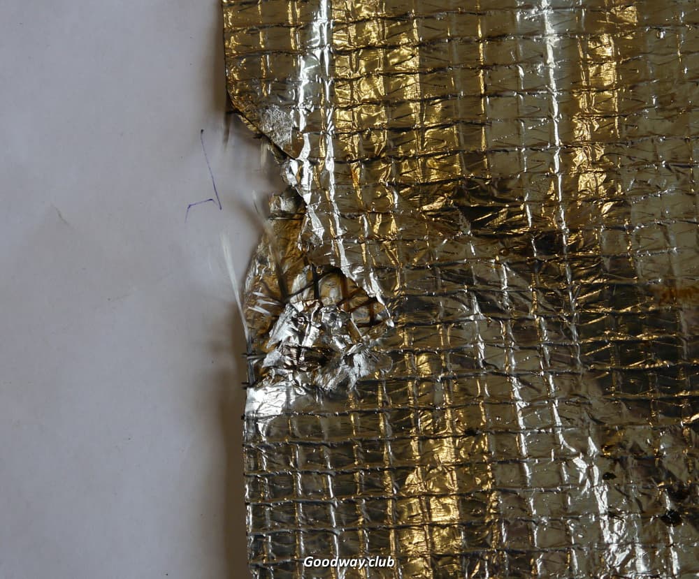 Её можно складывать как угодно. Да, она довольно нежная, со временем истрёпывается. У меня такая ветрозащита выдерживает три 9-дневных похода. Не сложно делать новую каждые несколько походов. Пробовал я применять алюминиевую фольгу толщиной 0,05мм, но она довольно жёсткая, на сгибах дырявится быстро, складывать как попало её нельзя, а только скручивать в рулон. И выдерживает те же 3 похода. Пробовал применять фолар 0,05мм (стеклосетка, с двух сторон покрытая алюминиевой фольгой, продаётся в строительных магазинах). Но сетка эта горит, фольга быстро ломается.